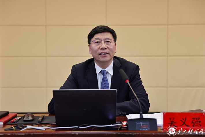 吴义强指出,刚刚胜利闭幕的全国两会是在“十四五”即将收官、“十五五”谋篇布局关键之年召开的一次重要会议。会议成果丰富,充分体现了党的主张和人民意志的统一。他从“两会”盛况、十四届全国人大三次会议主要精神、全国政协十四届三次会议主要精神、湖南代表团履职情况、湖南省迅速传达落实全国两会精神、我校参会代表履职情况,坚定信心、真抓实干,推动学校高质量发展等方面,重点传达学习了习近平总书记在全国两会期间发表的系列重要讲话精神,解读了政府工作报告、计划报告和草案、预算报告和草案、全国人大常委会工作报告、“两高”工作报告、修改代表法的主要内容,并对加快推进教育、科技、人才一体化发展,推动学校高质量发展作出明确部署。